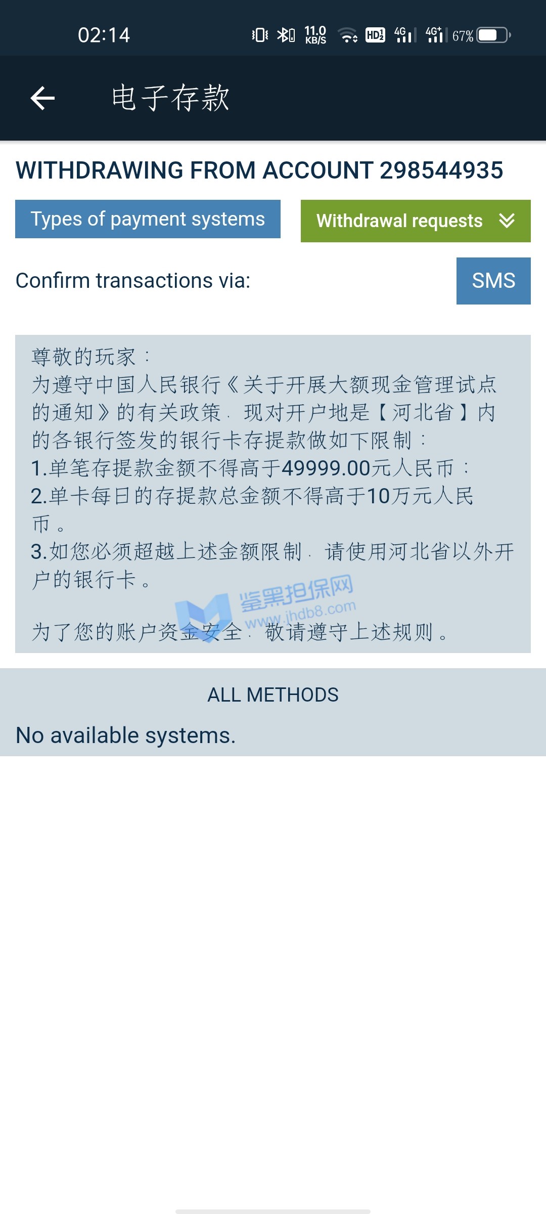 本人喜欢玩dt游戏,以前都是在龙8,乐虎优乐优发这些平台玩了几年,输了蛮多,前几天通过谷歌搜索dt游戏的台子,无意发现了一个推广站,所以2天时间,分别注册了22bet.1xbet betwinner.melbet一起4个台子,因为都有dt游戏,而且都是一个模板,我本以为是国际大公司,现在我极力认为这几个台子都是一家,首先我在1xbet充值2000后输了,而且未达到首存的流水,我就关闭了奖励账户,直接在充值2000,这次直接打到了7800,我试着去提款,但是不能提,客服说必须等到一个月后奖励账户流水限制自动关闭,然后我就没管了,晚上我又继续90一注玩dt游戏直接打到了10900元,也没管了,想着一个月后在去试着提款,同样是betwinner第一天充值4000元,这次我没有要首存奖励,输完了,第二天又充值了2000,这次70一注直接到了9800元,然后我想着去提款,因为betwinner没有银联充值取款渠道,我都是充值的usdt,所以我也直接打算提取usdt,尝试两次提取都是无法下发短信,然后我就试着联系在线客服,客服给我的第一句话就是,你现在想提款吗?然后神奇的一幕发生了,我的取款页面本来30几个提款方式的,变成1个都没有了,我登陆手机网页版本,直接取款页面都没有了,后面客服告诉我邮件联系安全部门,让我提供身份证正反,护照,还有手持身份证加安全部门邮件的合影,我都提供了,但是现在就没有消息了,在线客服给我答复意思就是要等3天之后等邮件,我从网上大致了解了这几个网站大多都说是黑网,我试着跟他们邮件说我不打算要盈利,只需要提款充值本金,现在也没有达到回复,还有就是我自从betwinner没有了取款选项,然后其他几个网站也同样没有了,毕竟我1xbet里面也有10900元,我联系1xbet好像也是要我联系安全部门,我心想着要1个月之后才能提款,就暂时没去发邮件。我不知道这些站什么情况,反正我玩了几年菠菜,还是第一次遇到黑网,所以请求帮忙联系交涉维权,就算盈利不要,我1xbet有4000,betwinner有6000充值本金,