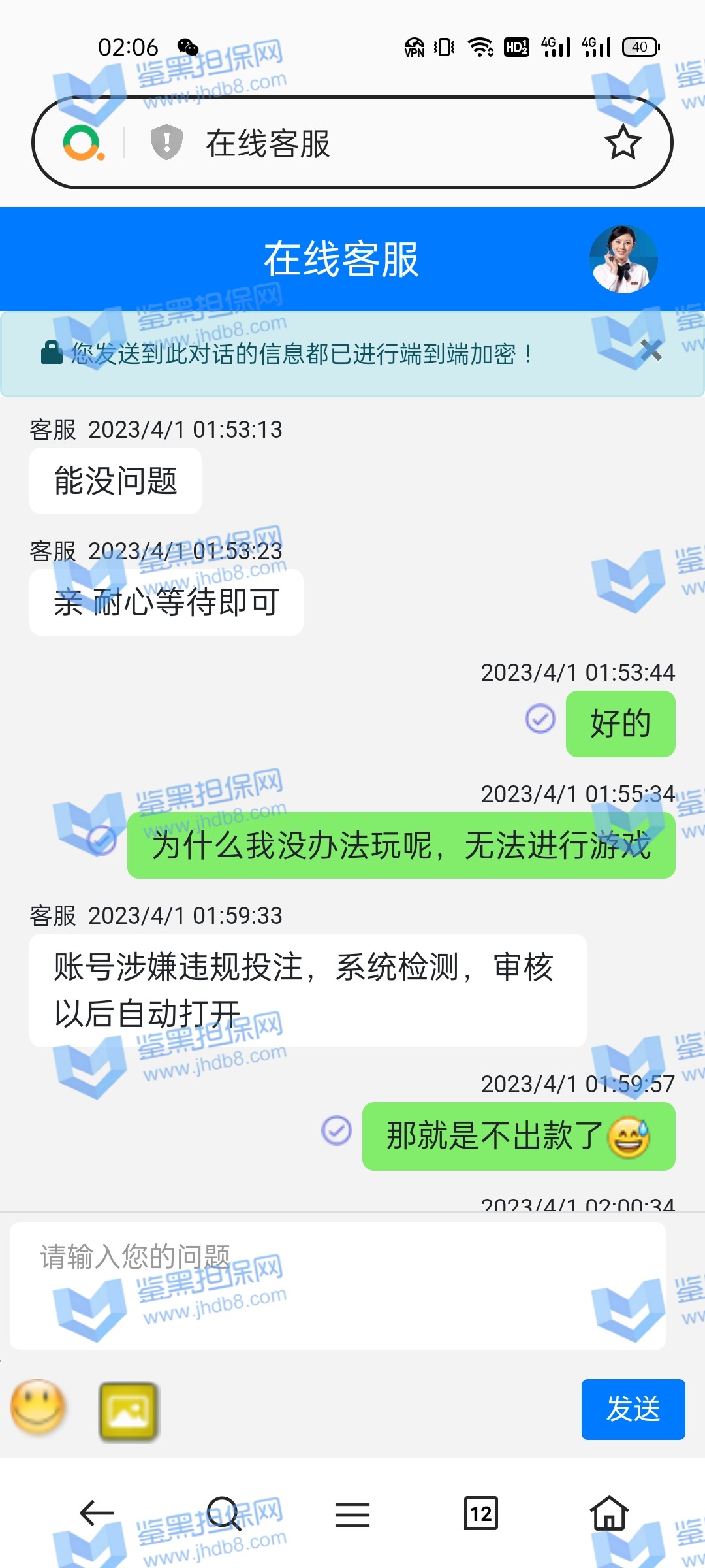 4.用户提交维权需为本人提交,若代替让人发布维权鉴黑担保网将拒绝受理;