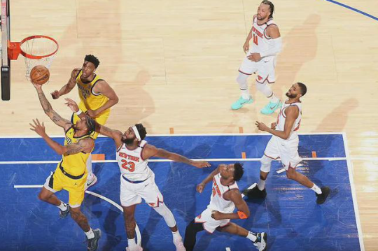 尼克斯队的布伦森得到40分、4个篮板和7次助攻,布里奇斯得到25分,阿奴诺比得到22分和5个篮板,哈特得到13分、10个篮板和4次助攻,唐斯得到10分和15个篮板。活塞队的坎宁安得到23分、7个篮板和8次助攻,杜伦得到21分和6个篮板,比斯利得到20分,汤普森得到17分和6个篮板,哈里斯得到14分和5个篮板,施罗德得到9分、4个篮板和9次助攻。
