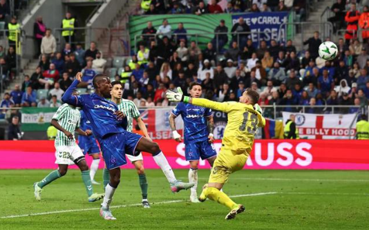 补时第2分钟,高桥花弧顶右侧射空门偏出右侧立柱。