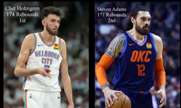 单赛季季后赛篮板数(174个)打破雷霆队史纪录。