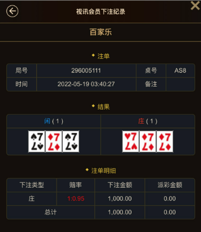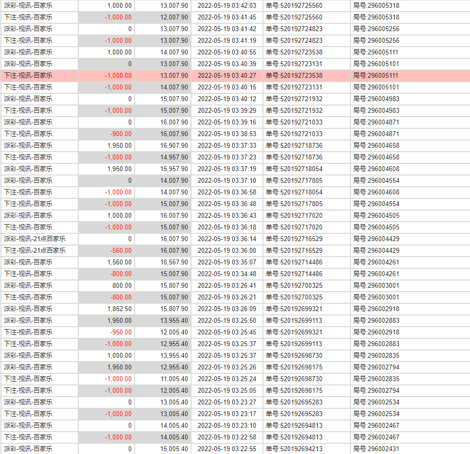 不仅如此我们看下这位大哥记录&游戏下注详情