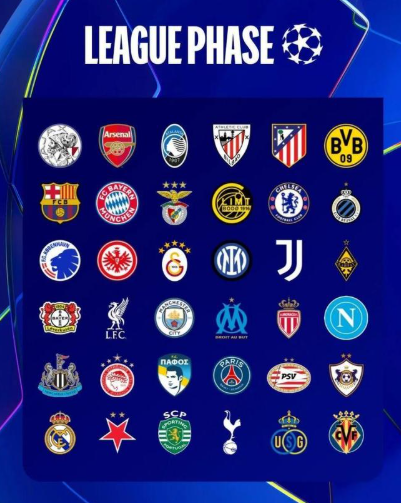 这是欧冠赛制改革后的第2个赛季,在全新的联赛阶段中,每支球队都将根据抽签从4个档位分别选出2个共计8个不同对手,进行4主4客共计8场比赛。